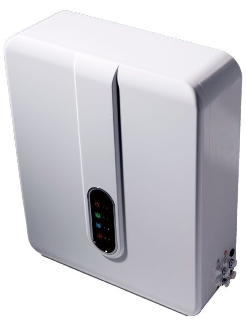 厨房净水机(R/O),采用国际领先逆渗透技术,运用五级净化工艺,有效滤除杂质、胶体、细菌、有机物、重金属金属离子和放射性物质等,净化后的水质晶莹清澈、甜美甘醇。该产品为专利产品,超薄机型,适合壁挂式安装,广泛适用于家庭、服务及办公场所,为解决家庭及企事业单位饮用净水需求提供完美的解决方案